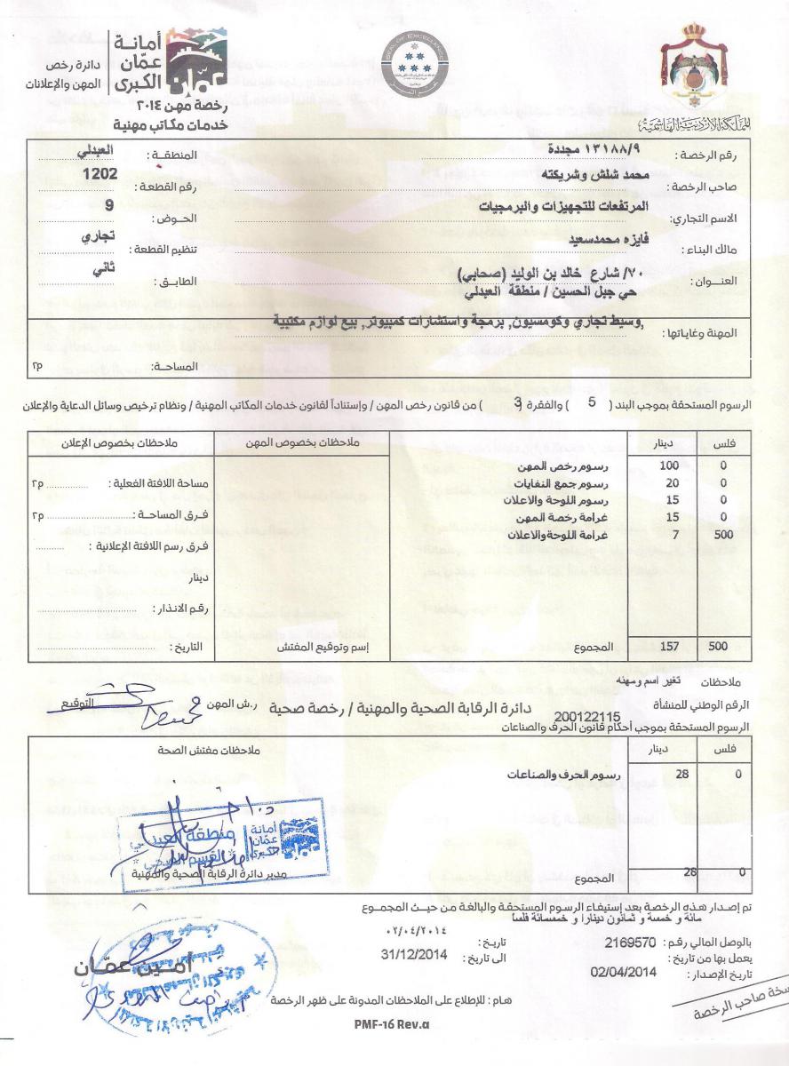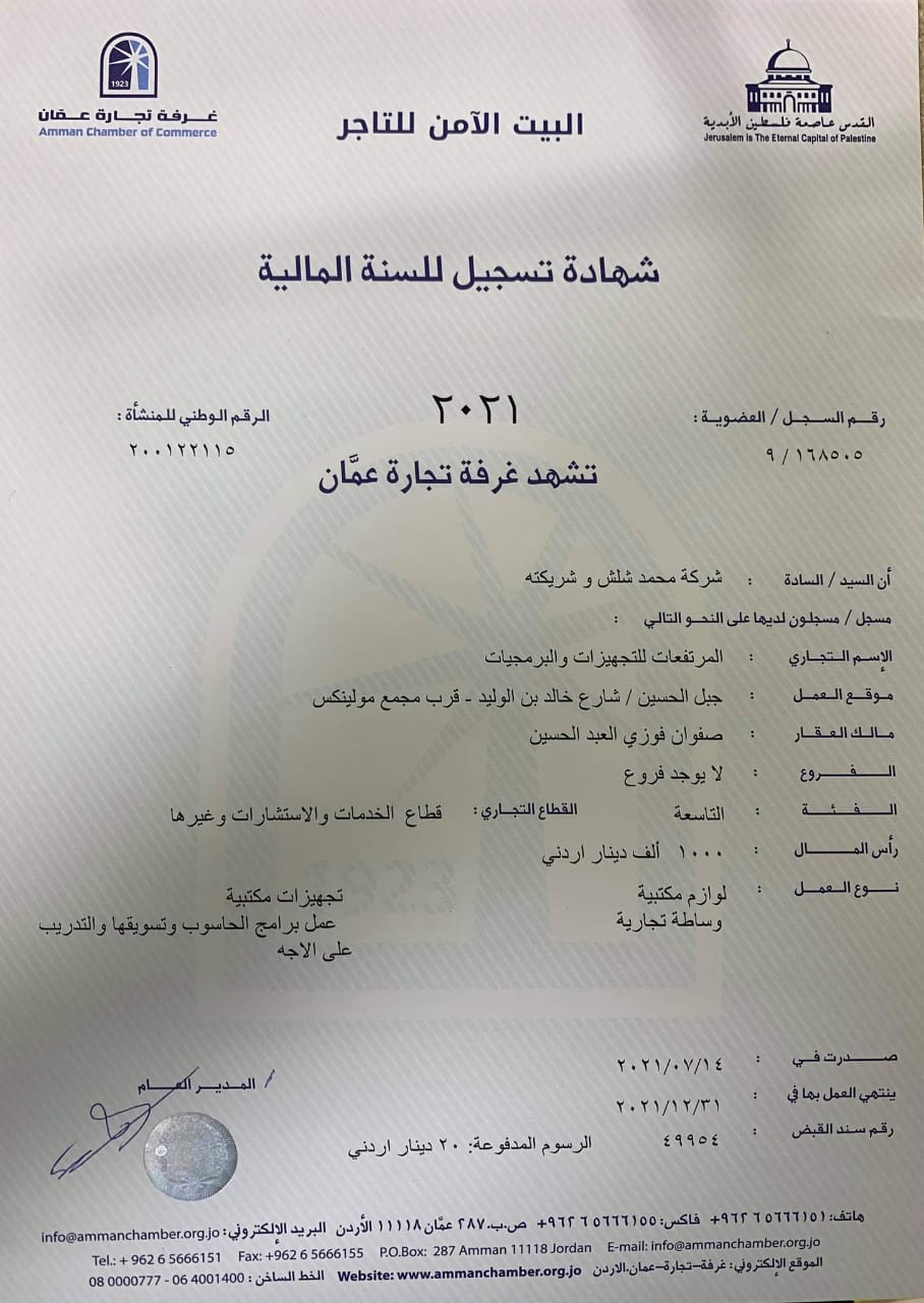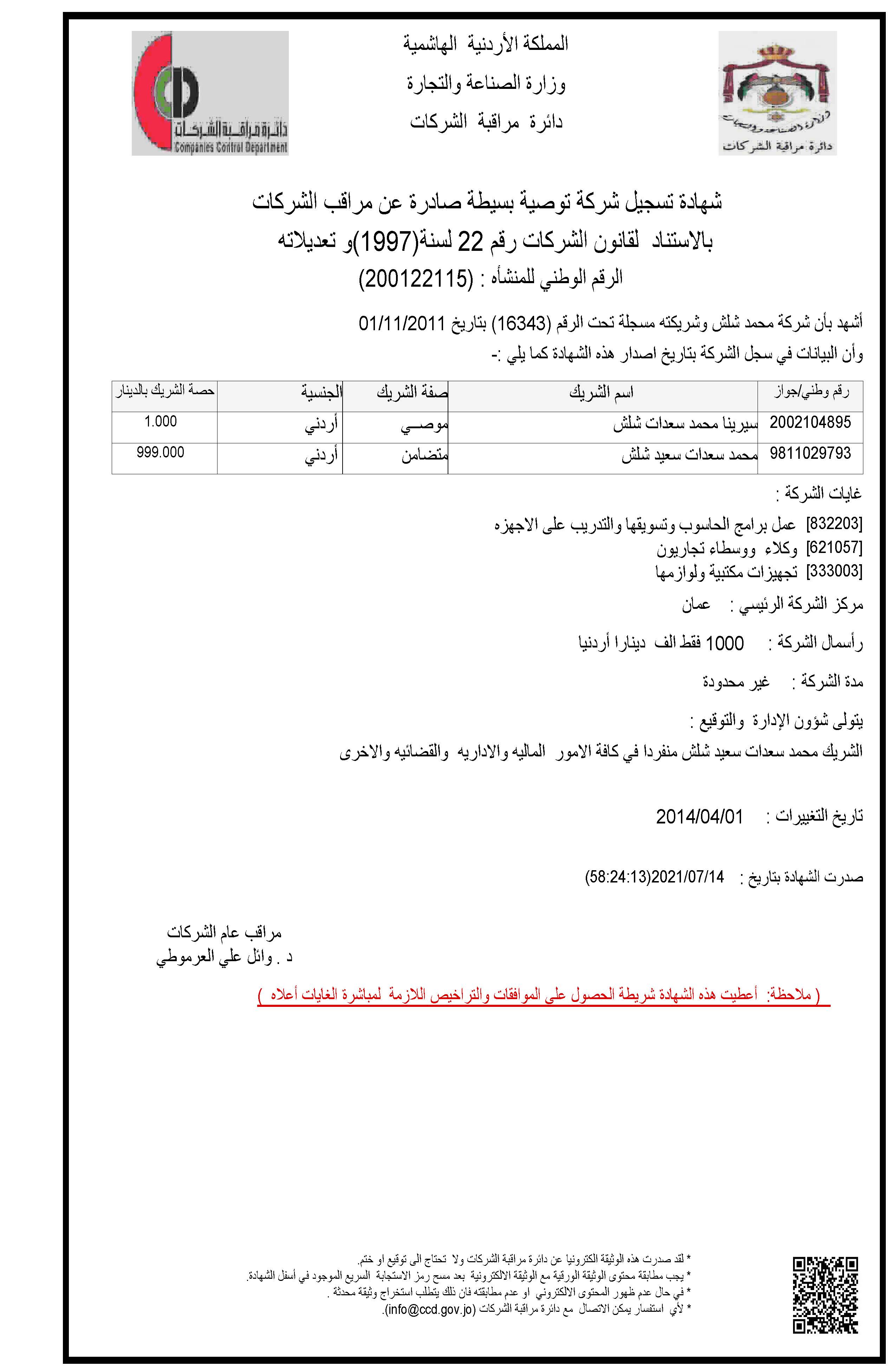 الوثائق الرسمية لشركة المرتفعات للتجهيزات والبرمجيات